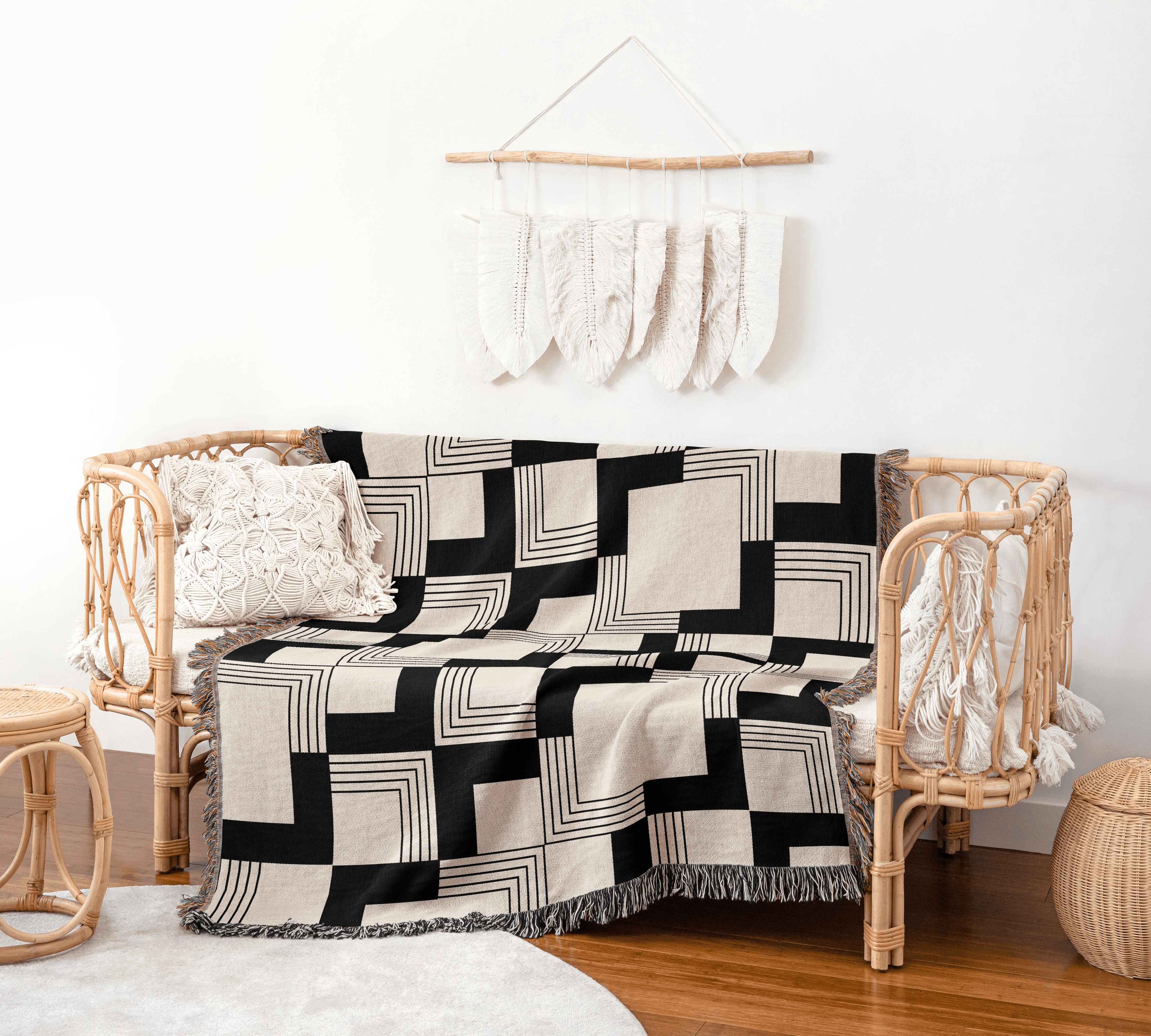 Regular price From $56.40 USDRegular priceBeige and Black Retro Art Woven Throw Blanket