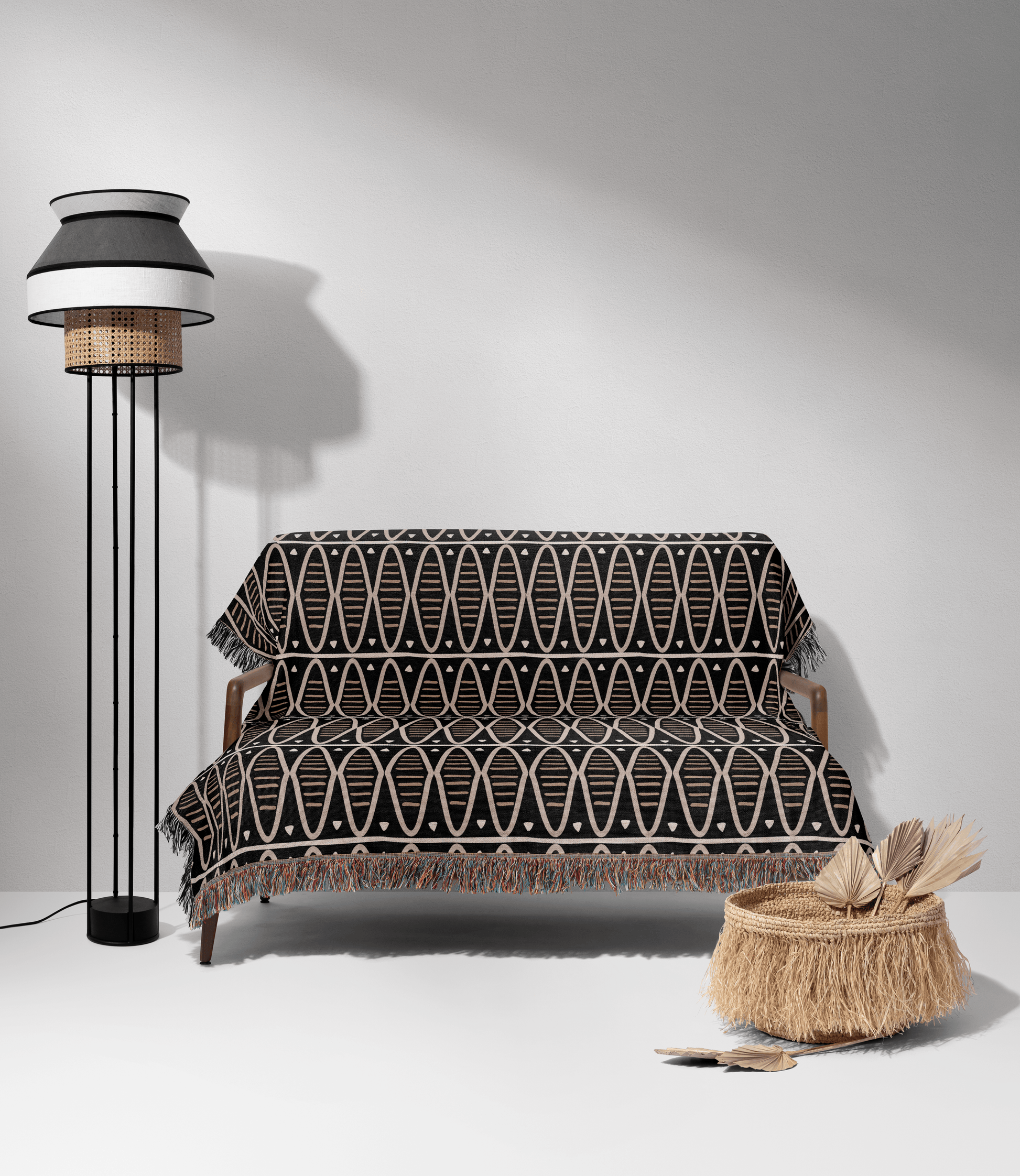 Modern Earth Tone Woven Cotton Blanket in Black and Warm Beige