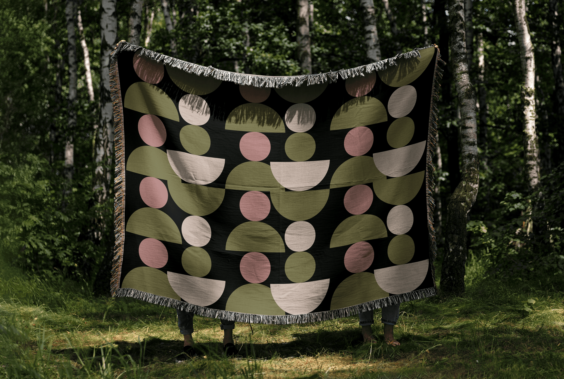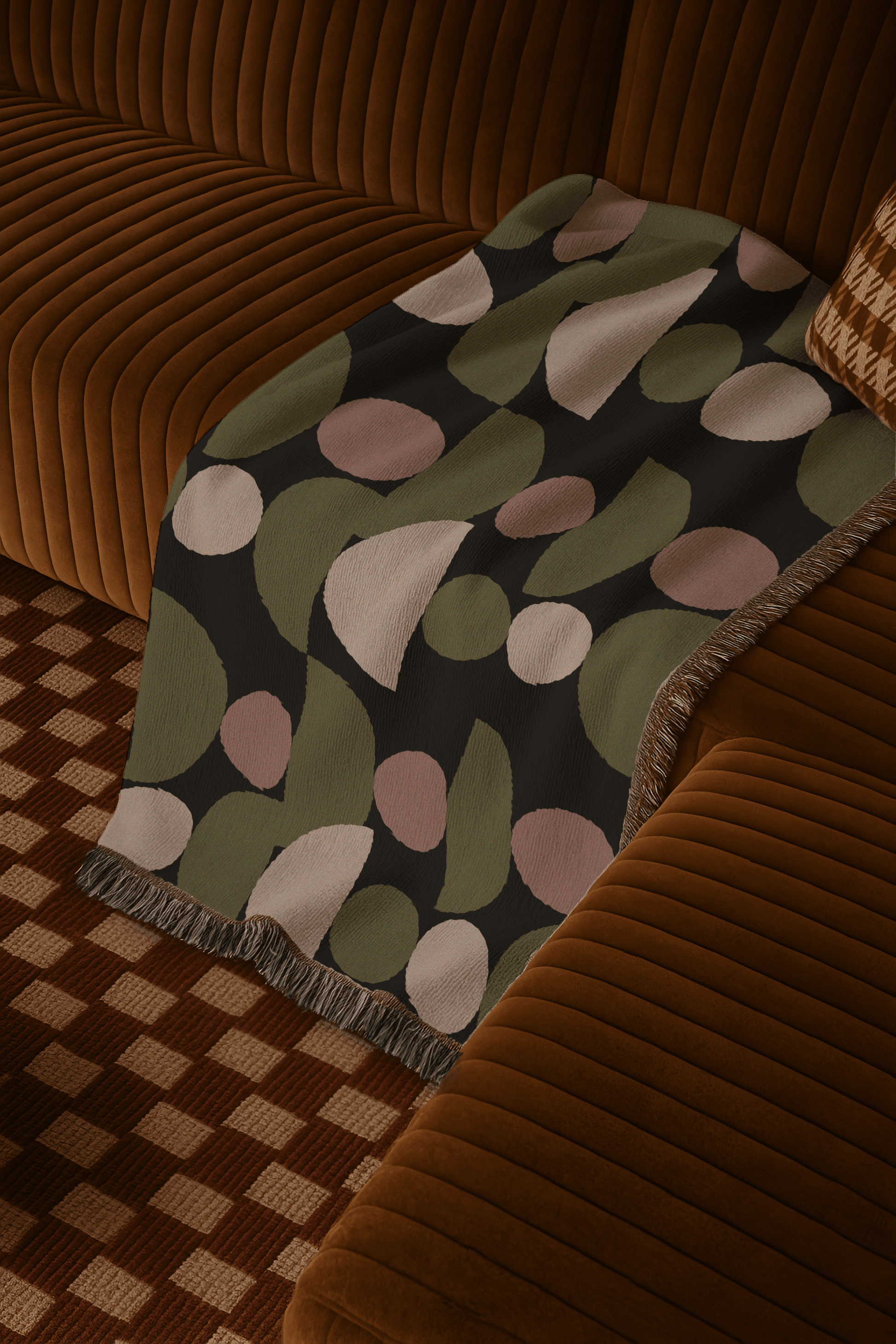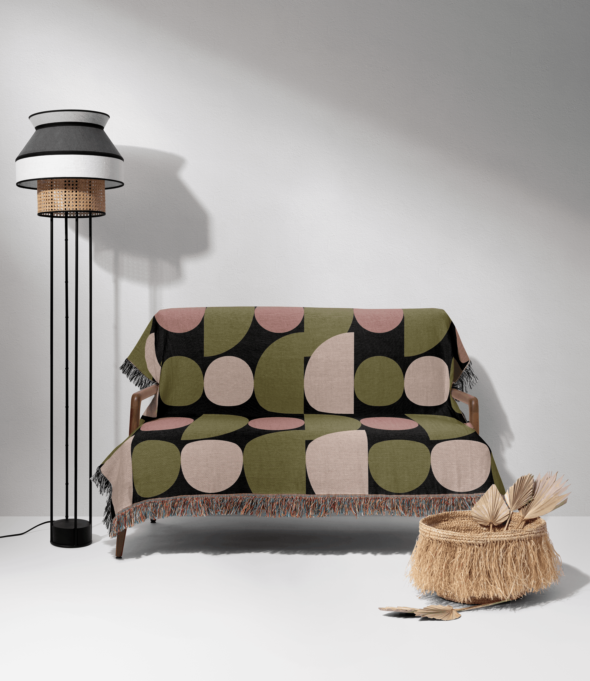 Modern Geometric Woven Throw Blanket – Olive, Blush & Cream Circles