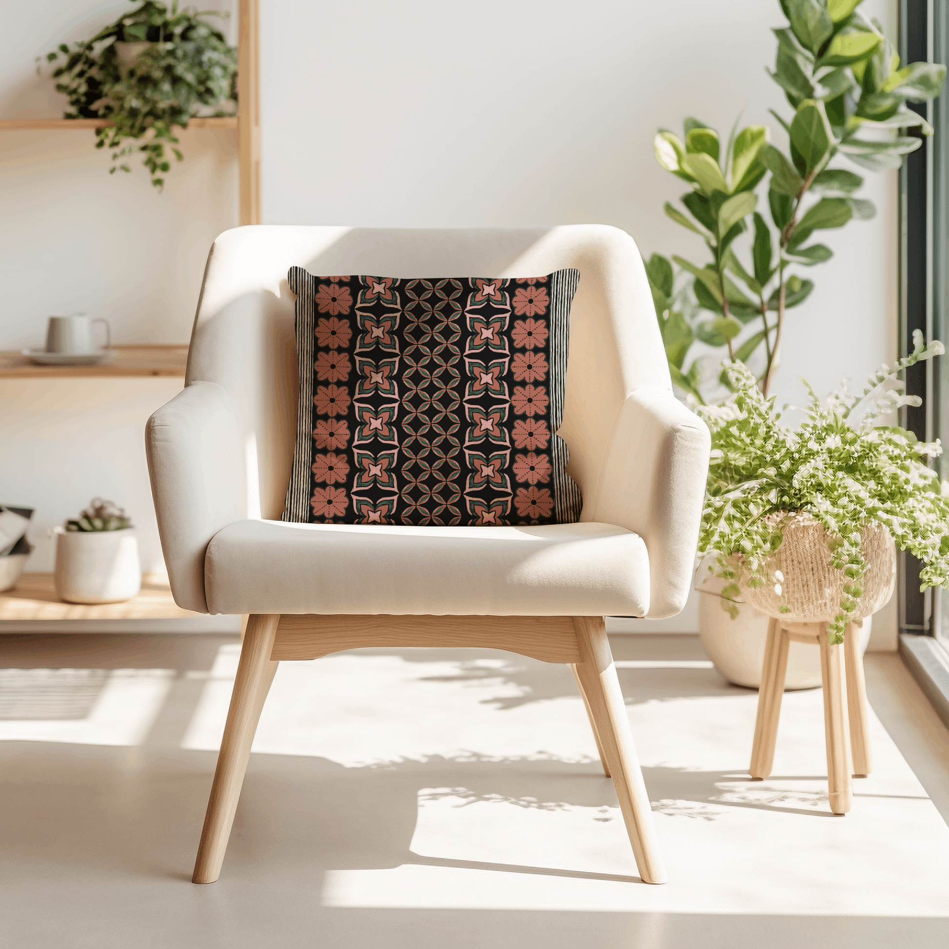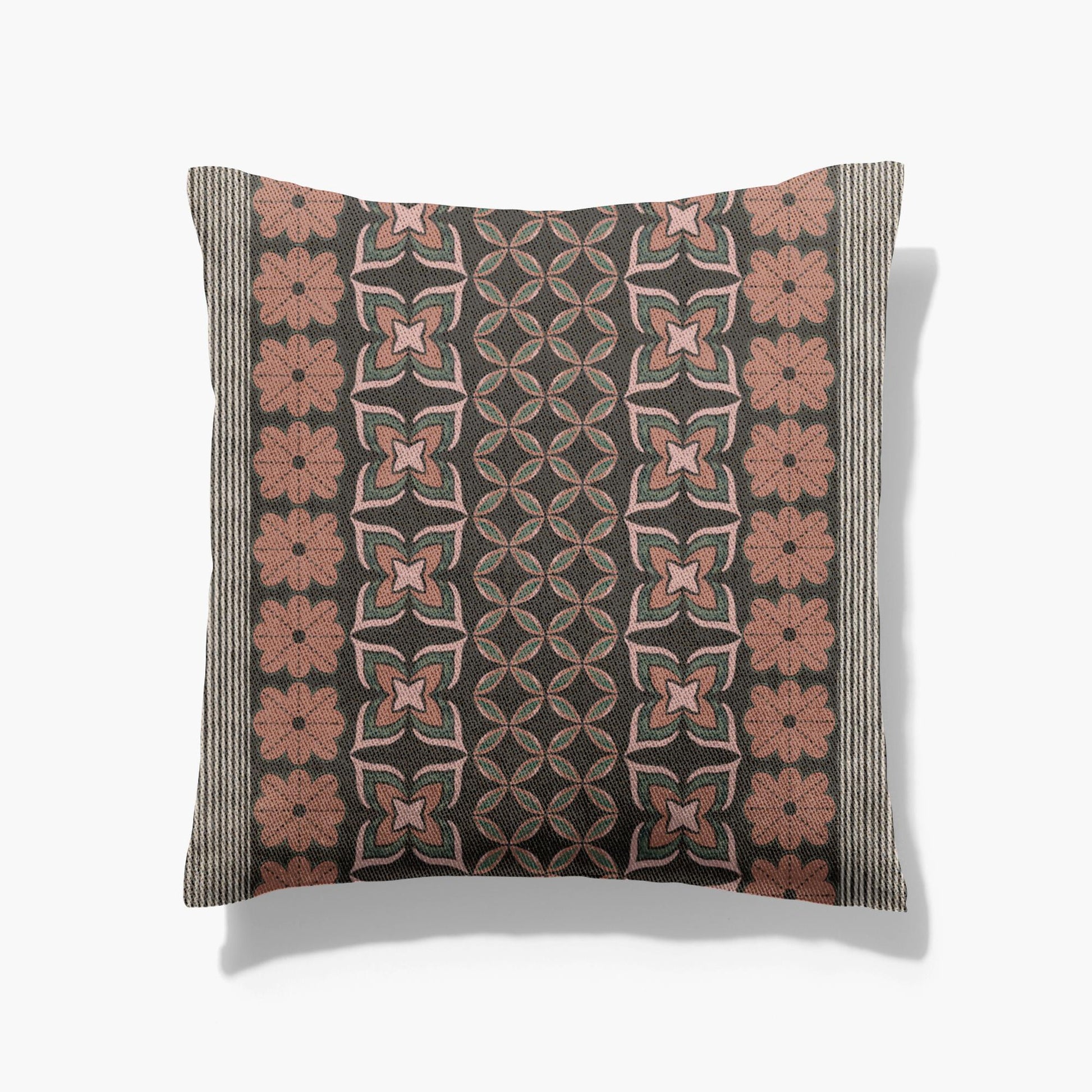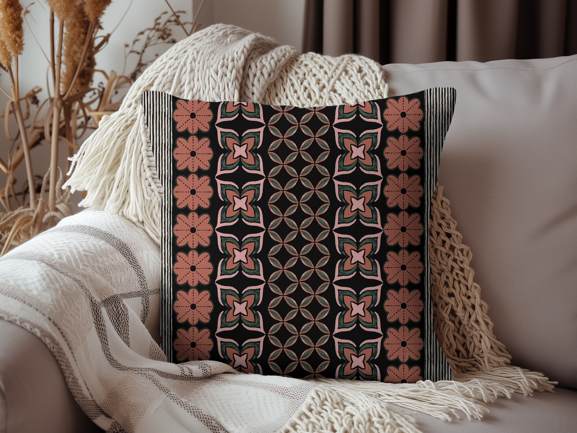 Vintage 70s Inspired Orange and Green Floral Stripe Throw Pillow