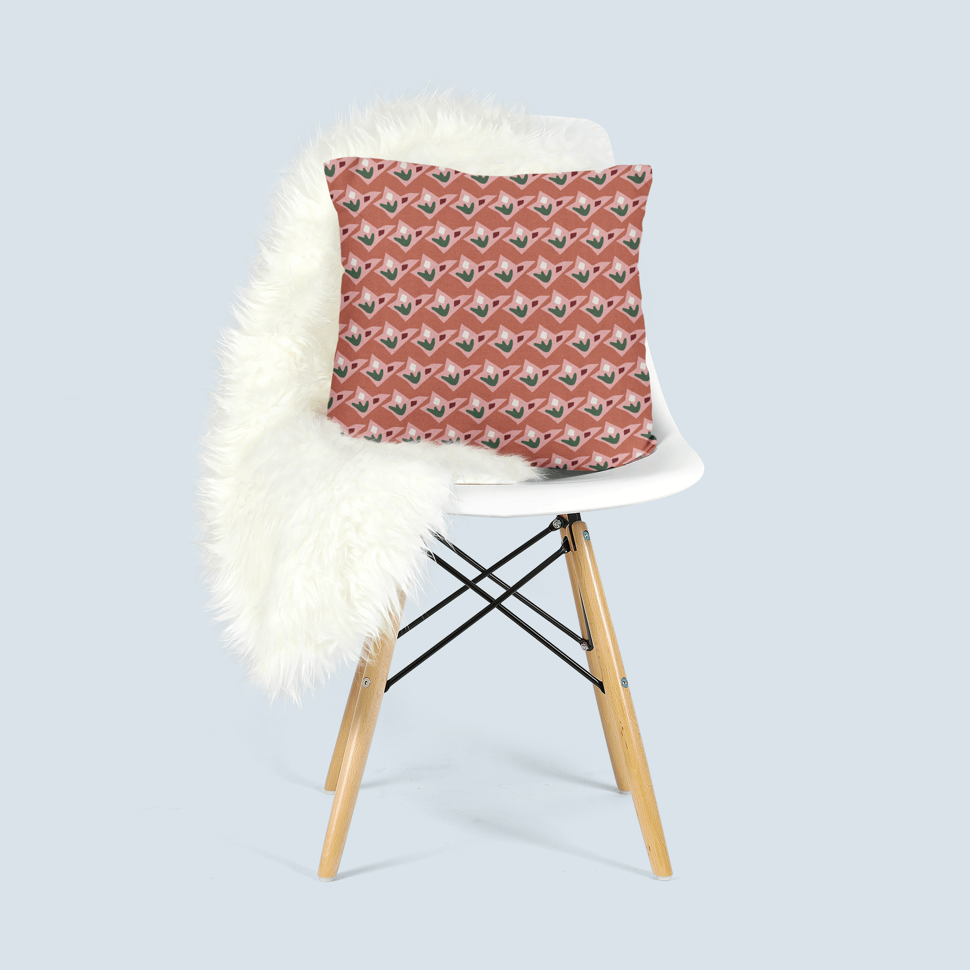 Terracotta, Pink, and Green Geometric Floral Woven Pillow